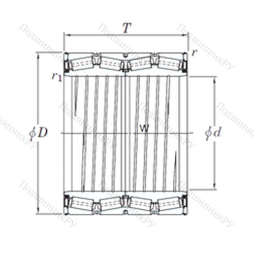 Подшипник роликовый радиально-упорный 47TS835944A у которого конструкционной особенностью являются ролики в форме конуса и разъемный корпус. Изделие также может быть укомплектовано наружным кольцом с упорным бортиком или большим углом, двухрядными или четырехрядными роликоподшипниками, утолщенной внешней шиной.