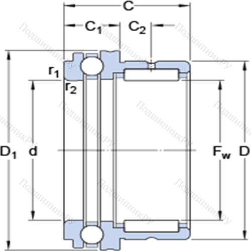 Комбинированные упорные шарикоподшипники с игольчатыми роликами NKX 17