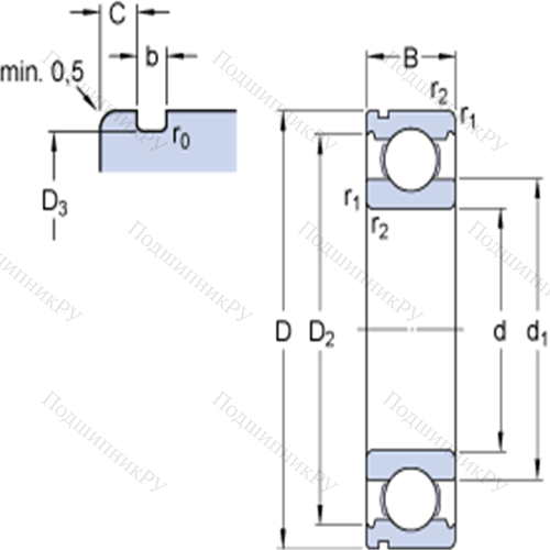 Однорядные радиальные шарикоподшипники с канавкой под стопорное кольцо 6304 N